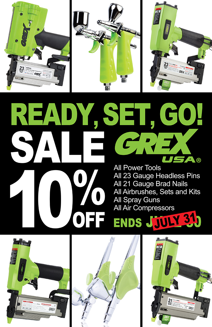 In order to accommodate the different dates that businesses are re-opening across the country, we will be extending our sale until the end of JULY. Everyone still has time to enjoy a 10% savings on Grex tools and airbrushes.